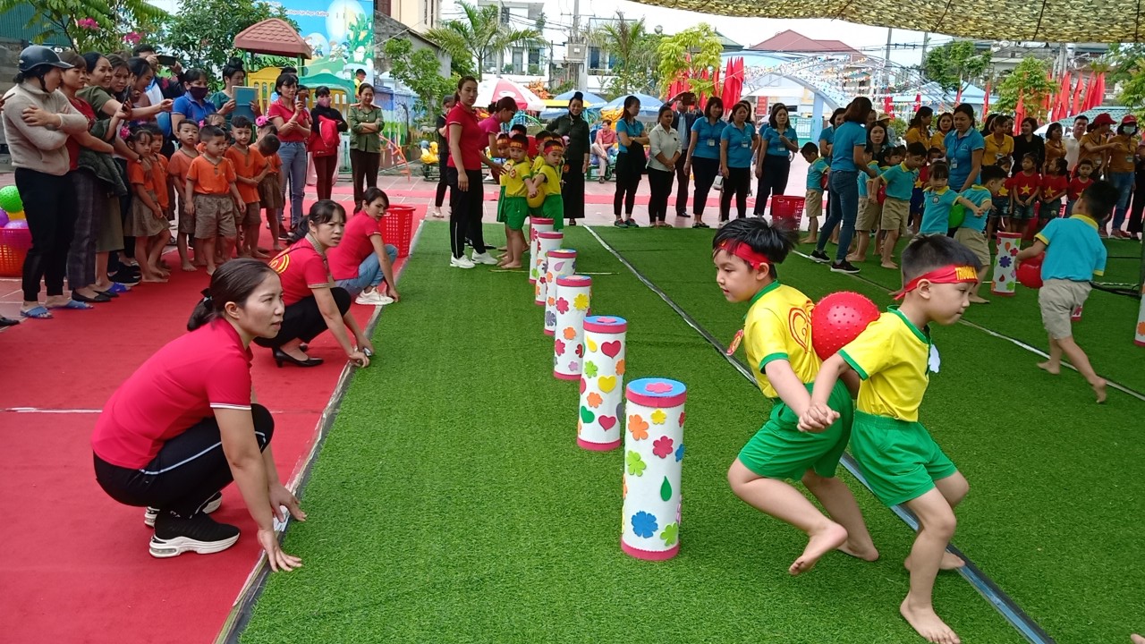 Đến với ngày hội thể thao năm nay các bé còn được giao lưu và trải nghiệm nhiều trò chơi vô cùng hấp dẫn, đầy hào hứng như: Chuyền bóng bằng bụng đi theo đường dích dắc, đôi dép thần kỳ, chuyền bóng bằng lưng và đi theo đường dích dắc, nhảy bao bố. Các hoạt động này giúp các bé phát triển khả năng phối hợp, sự khéo léo và tinh thần đồng đội. Ngày hội thể thao của bé ngày càng khí thế và phấn chấn hơn khi có sự cổ vũ nhiệt tình của các bậc phụ huynh.