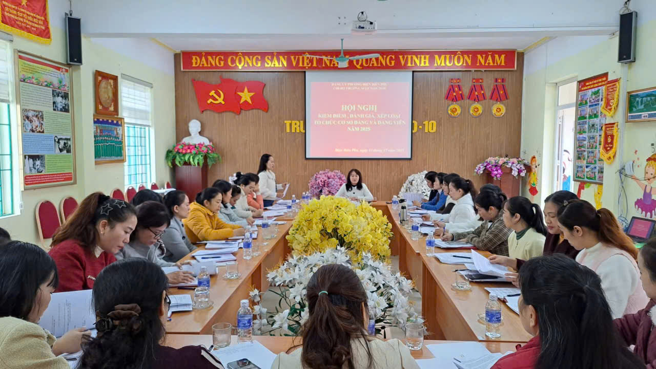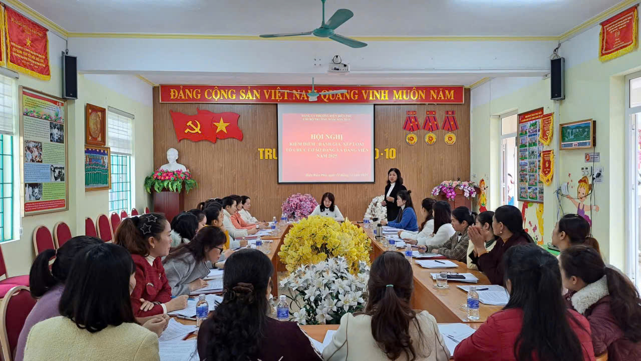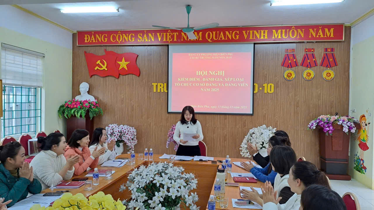 CHI BỘ TRƯỜNG MẦM NON 20/10 TỔ CHỨC HỘI NGHỊ KIỂM ĐIỂM, ĐÁNH GIÁ, XẾP LOẠI ĐỐI VỚI TẬP THỂ VÀ CÁ NHÂN NĂM 2025