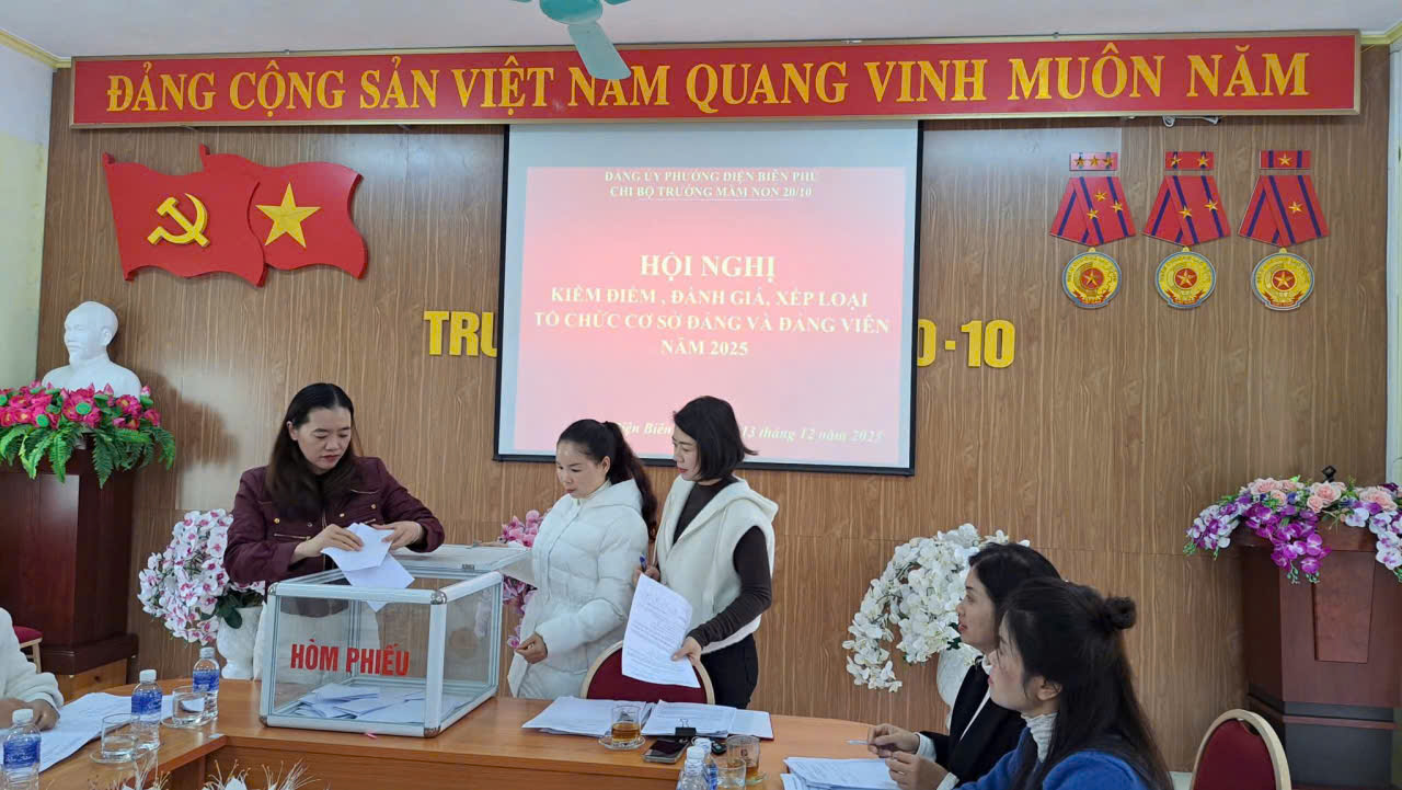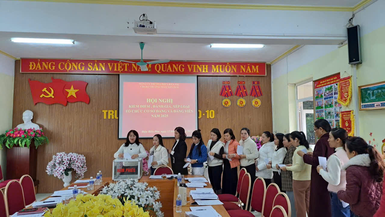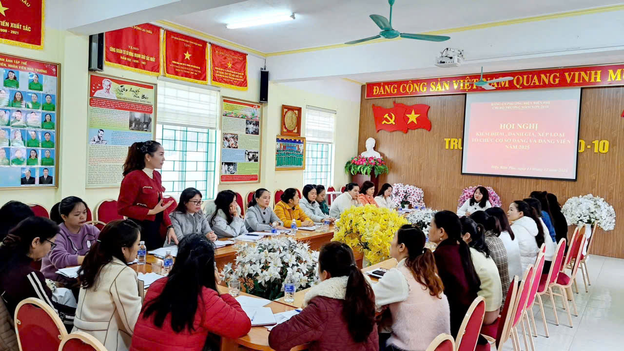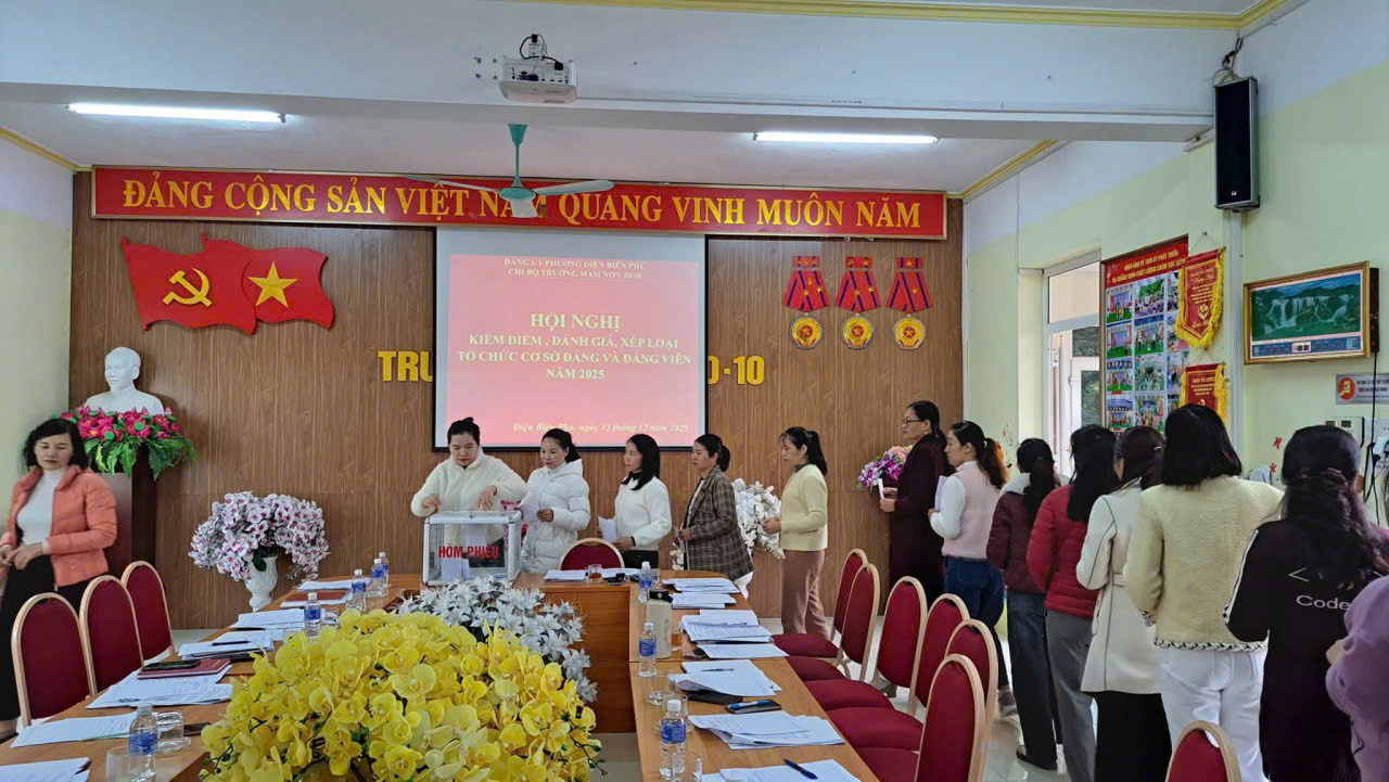 CHI BỘ TRƯỜNG MẦM NON 20/10 TỔ CHỨC HỘI NGHỊ KIỂM ĐIỂM, ĐÁNH GIÁ, XẾP LOẠI ĐỐI VỚI TẬP THỂ VÀ CÁ NHÂN NĂM 2025