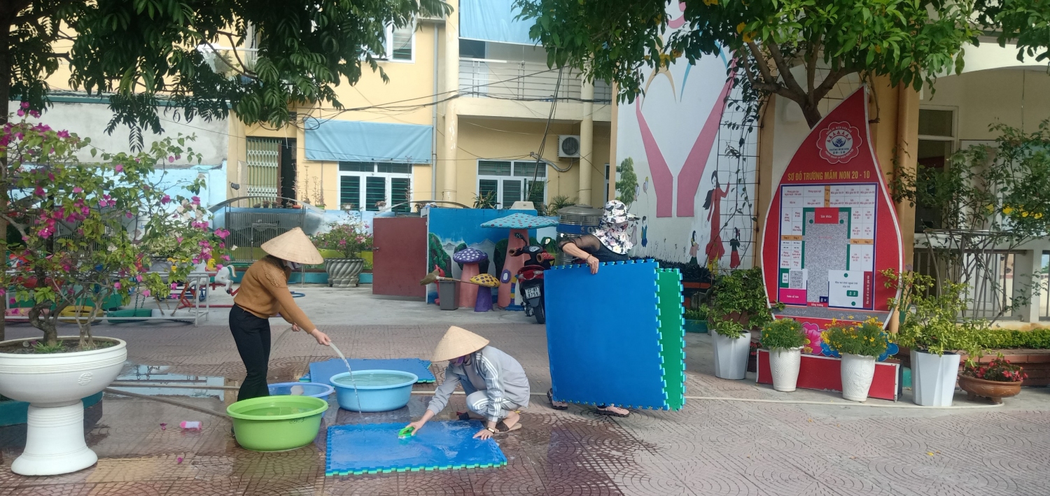 CÔNG TÁC VỆ SINH VÀ ĐẢM BẢO AN TOÀN VỀ CƠ SỞ VẬT CHẤT  TRƯỚC KHI NGHỈ TẾT NGUYÊN ĐÁN QUÝ MÃO TẠI TRƯỜNG MẦM NON 20/10